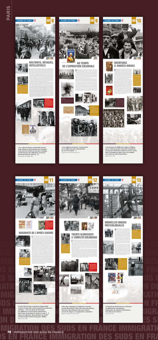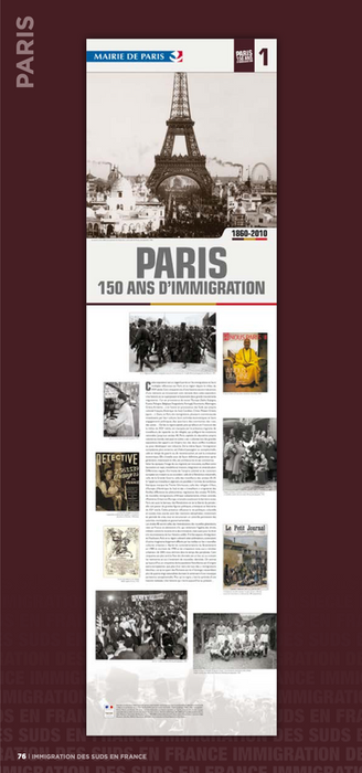 Participation à la mise en page de l'exposition Paris, 150 ans d'immigration exposé à l'hotel de ville de Paris, pour Achac groupe de recherche.